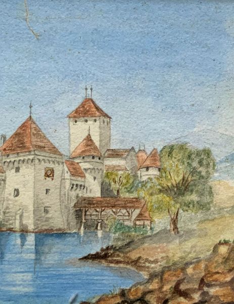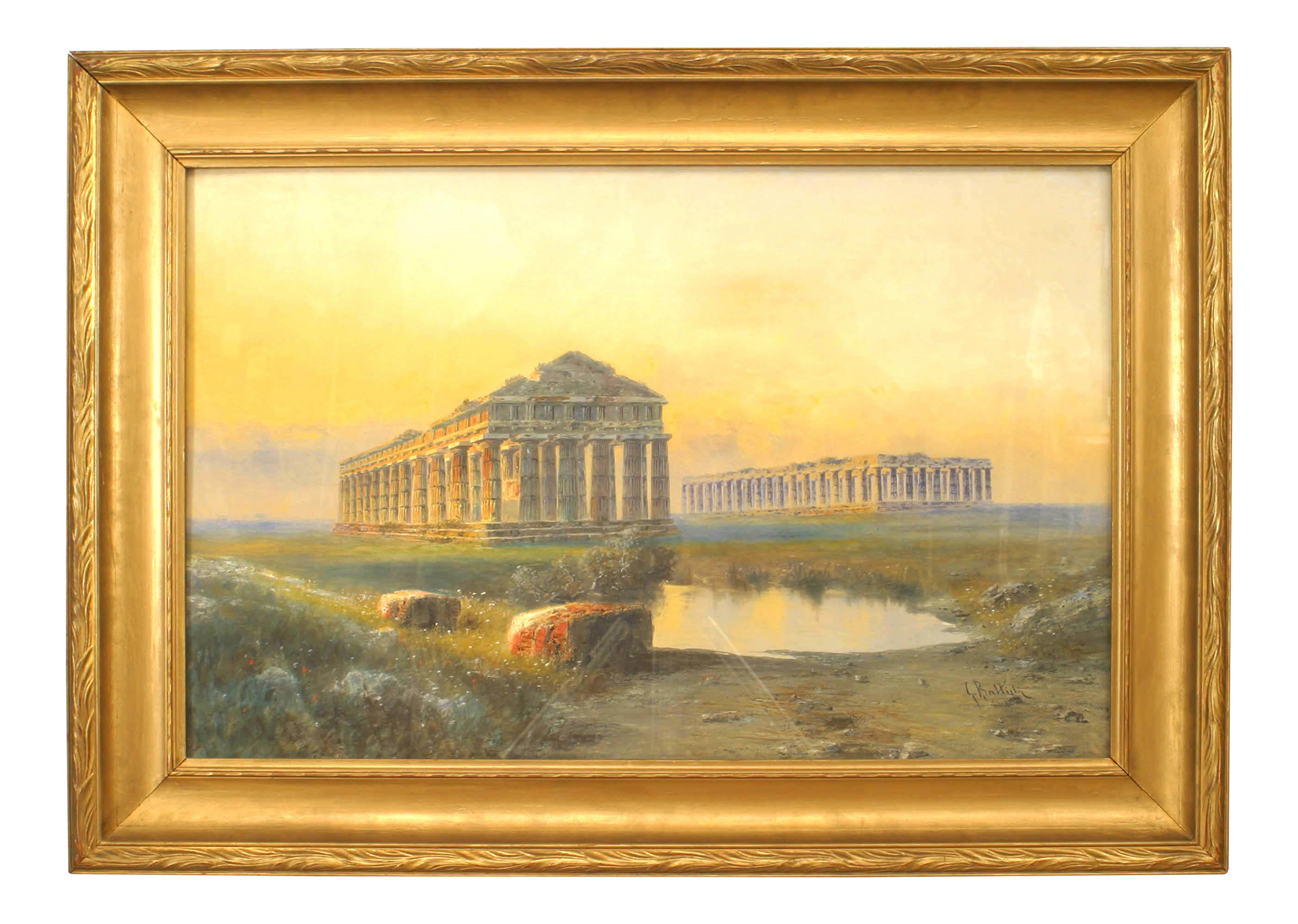 Antique 19th Century Italian Baroque Watercolor Landscape Painting
