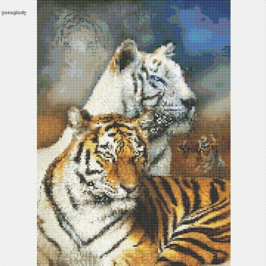 Sk Diy 5d Diamond Painting Tiger Lion Friends Diamond Embroidery