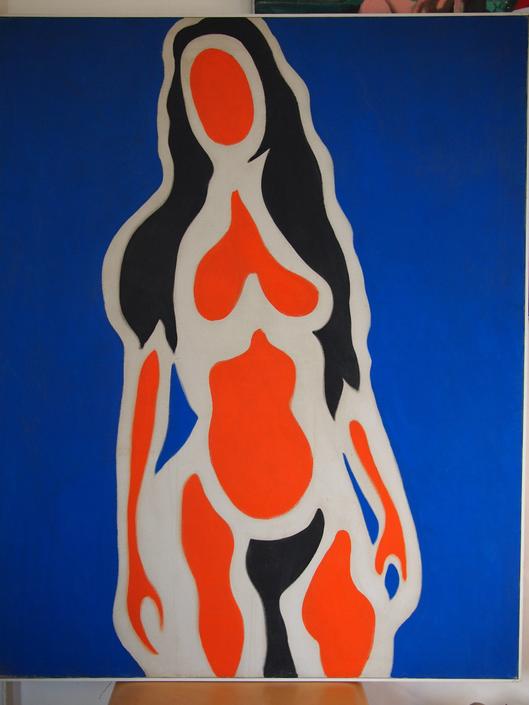 Woman In Black Dress Standing On Multi Colored Abstract Painting