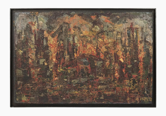 Mid Century Abstract Expressionist Oil Paintings Signed Griffin Pair