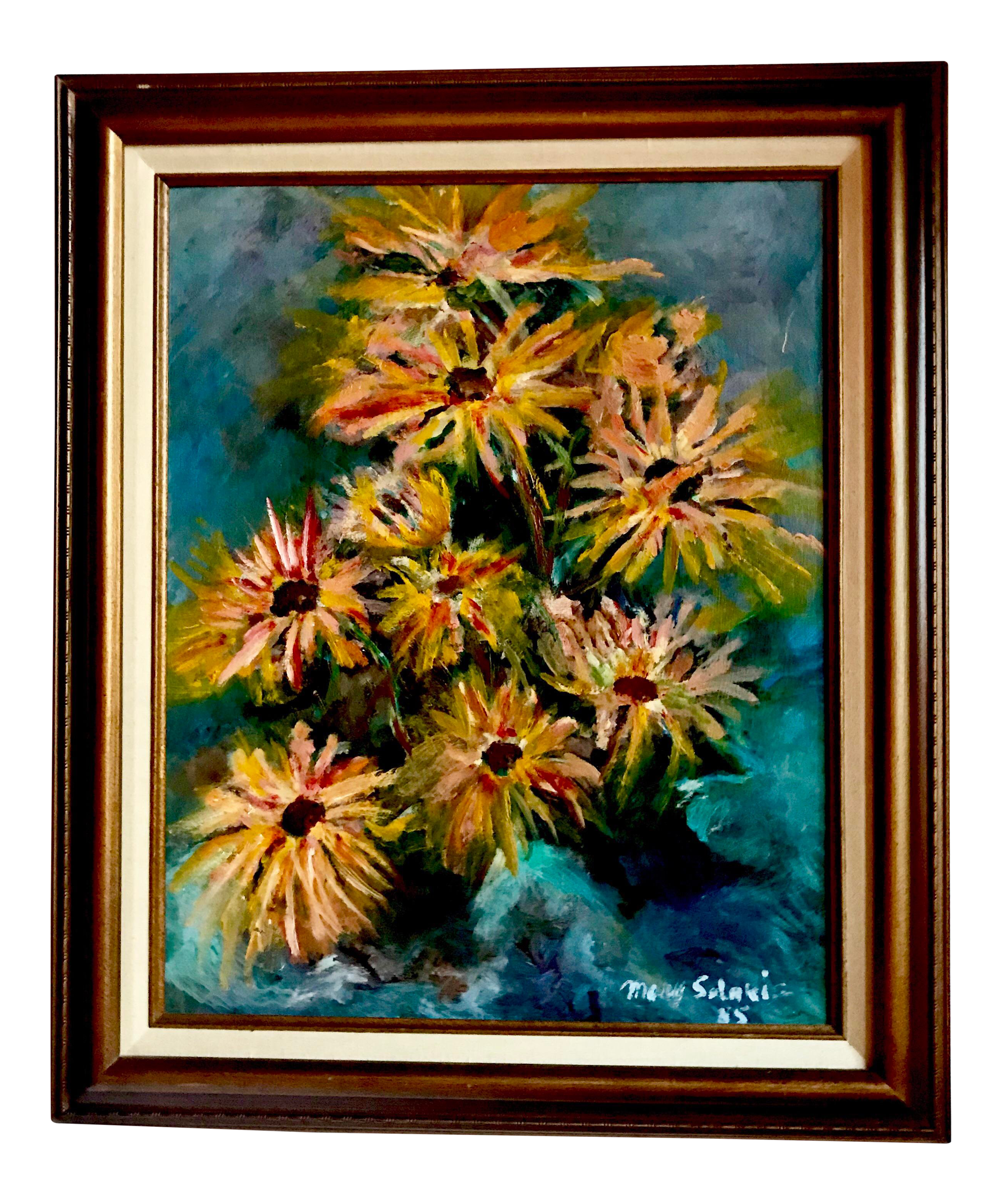 Hand Painted Square Abstract Flower Oil Painting On Canvas