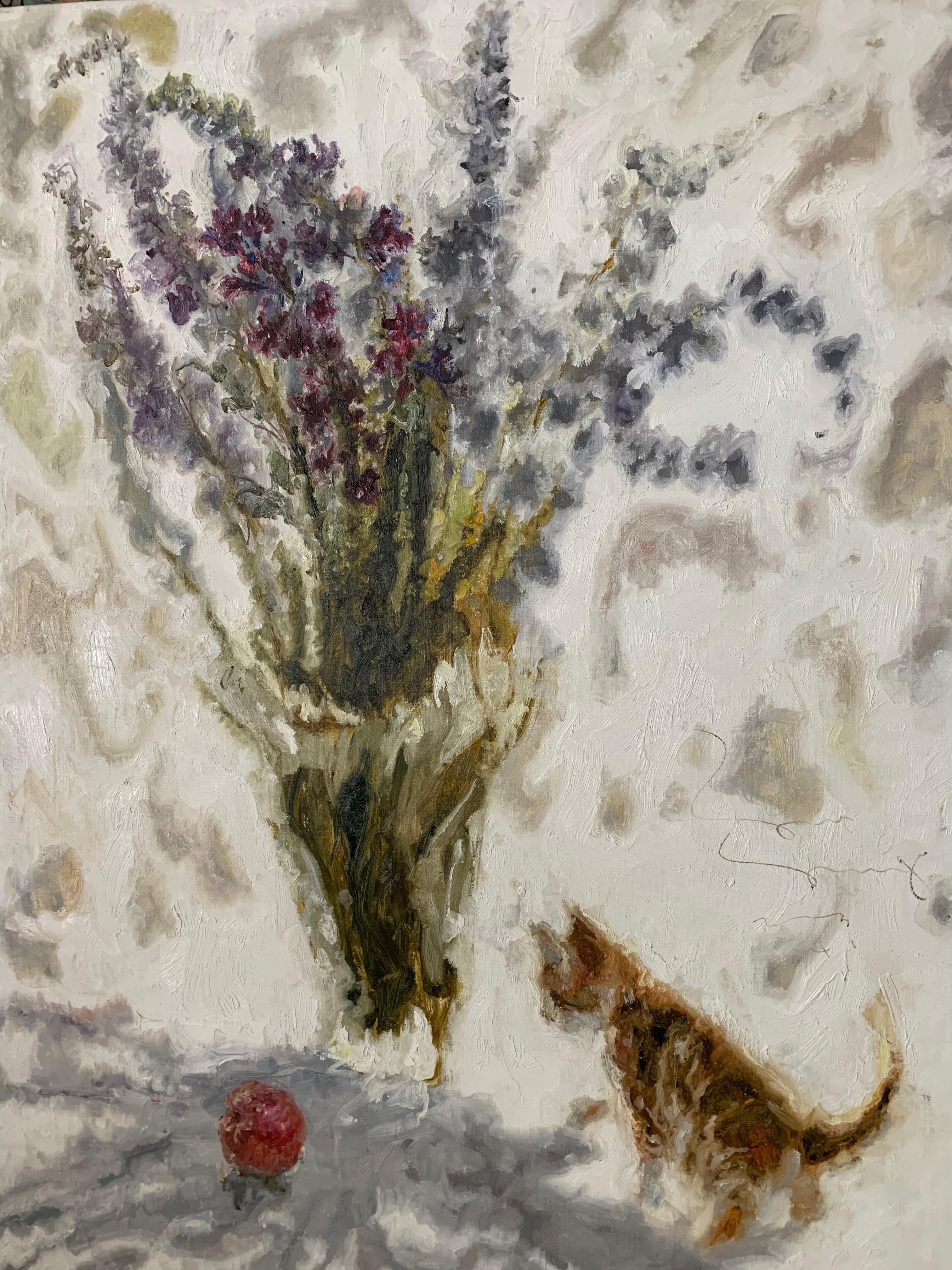 Brenda Barnum Abstract Flower In Vase Signed Original Oil Painting