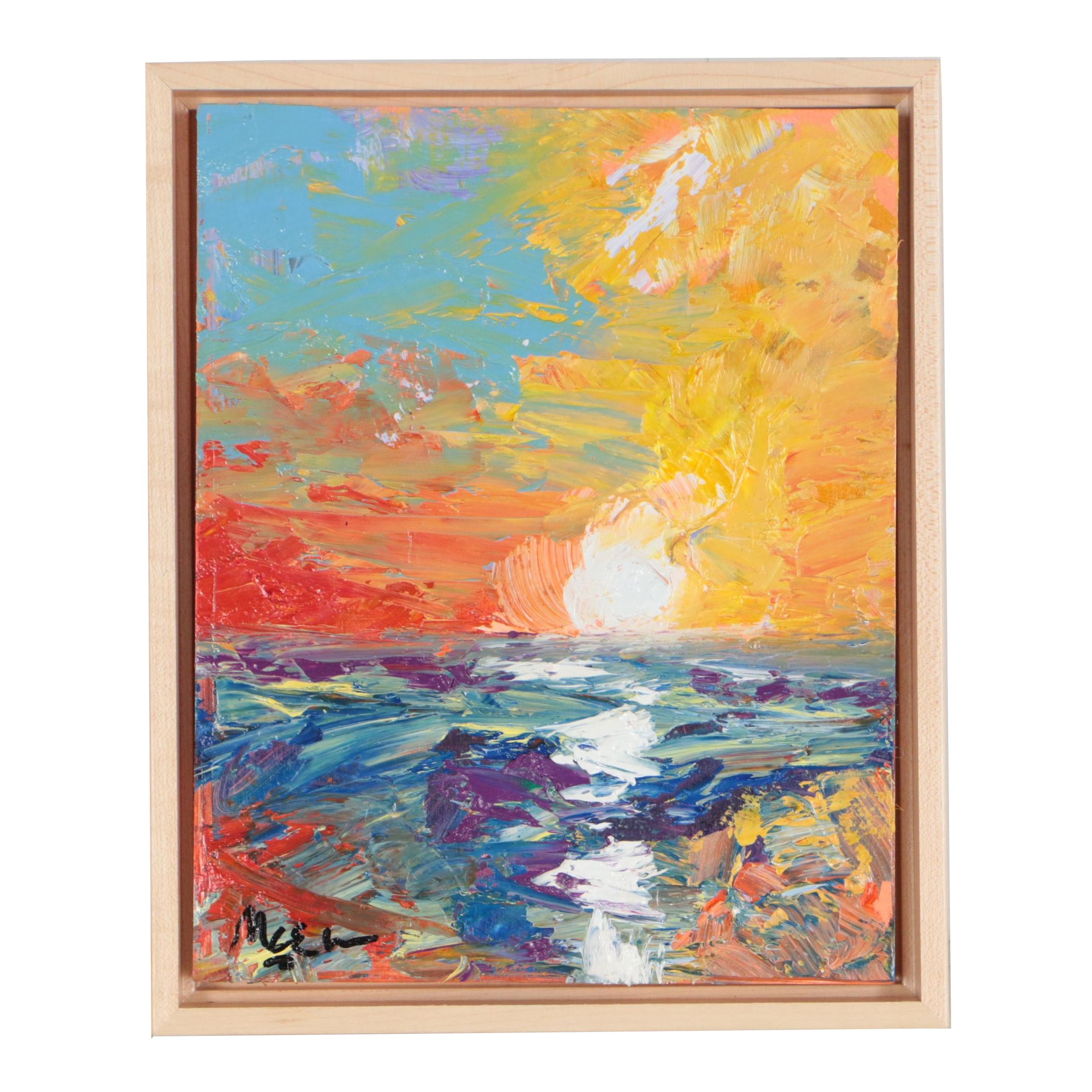 Original Signed Oil Painting Ocean Lake Sea Beach Abstract
