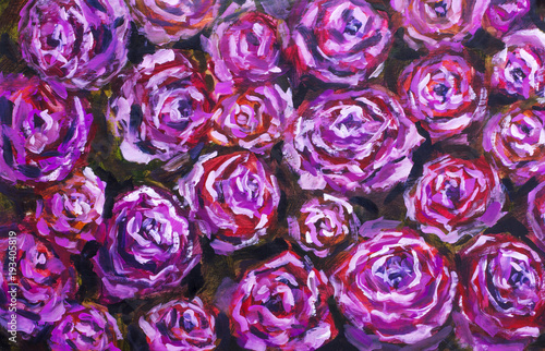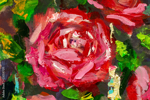Red Violet Flowers Rose Peony Close Up Oil Painting Abstract