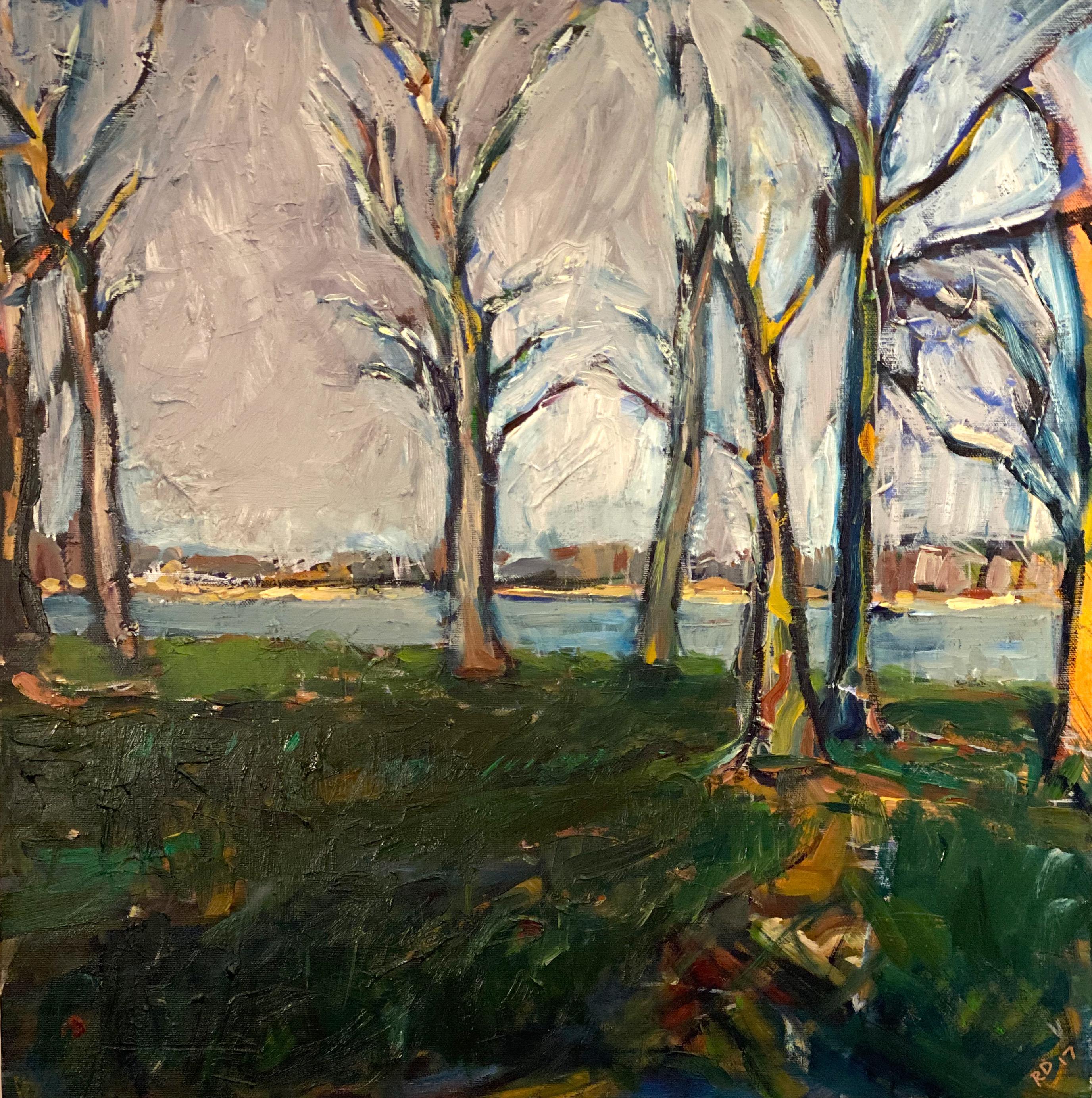 Oil Painting Landscape Colorful Autumn Trees Semi Abstract