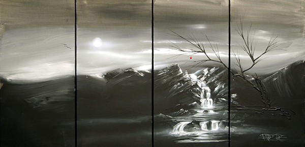 Black White Moonlight Acrylic Acrylic Landscape Paintings By