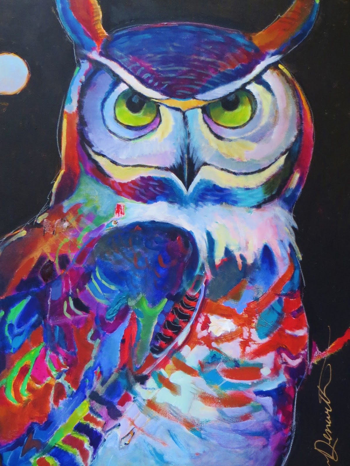 Colorful owl acrylic painting lesson.