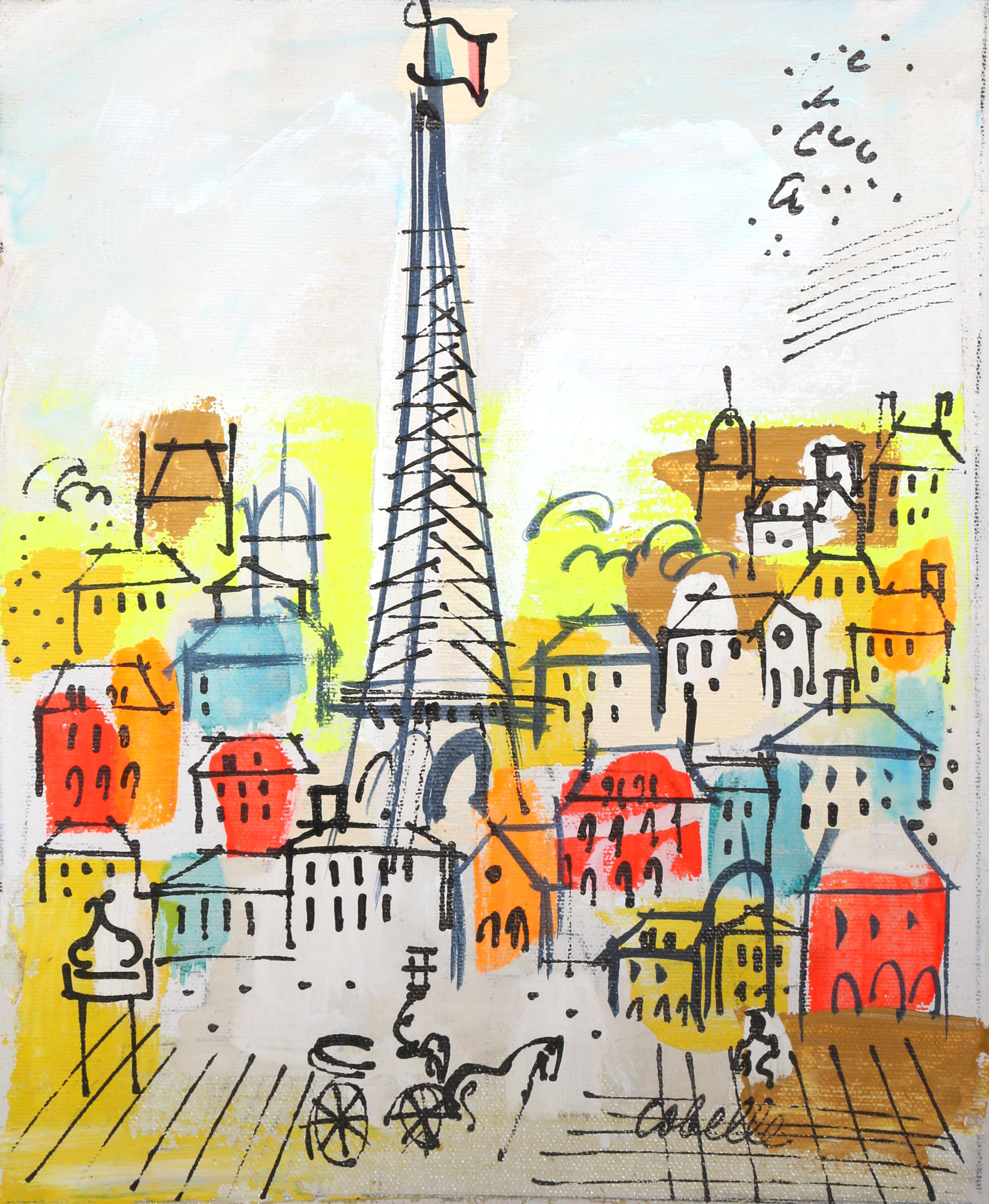 Abstract Painting Eiffel Tower And Red Trees Acrylic On Canvas Ebay