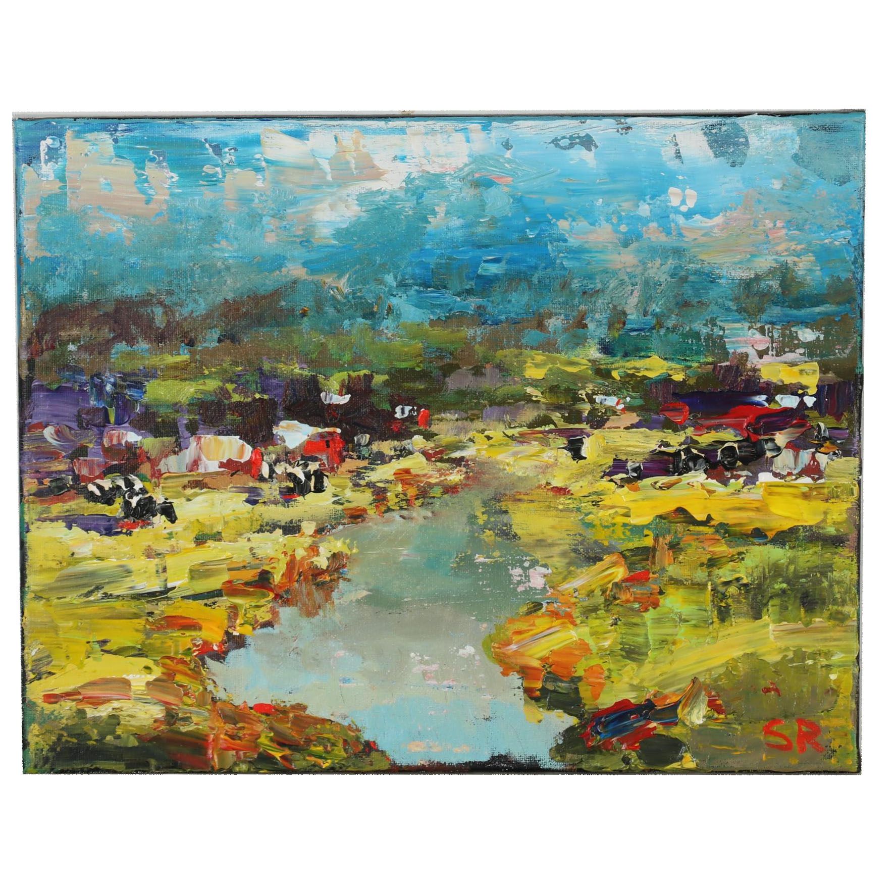 Acrylic Farm Landscape Painting