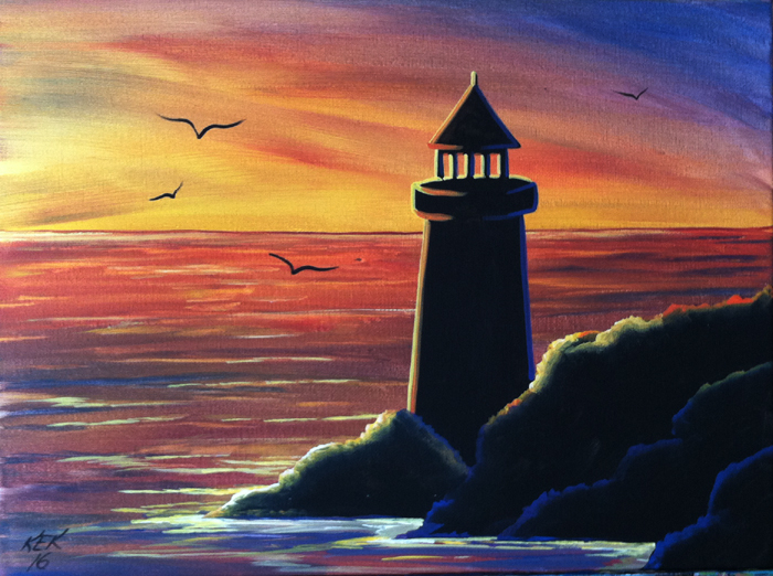Acrylic Lighthouse Silhouette Painting