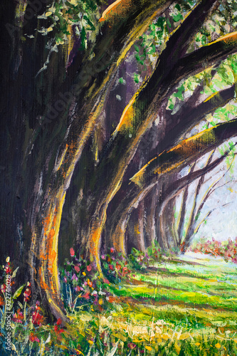 Abstract Painting Of Long Dark Tree Avenue In An Old English