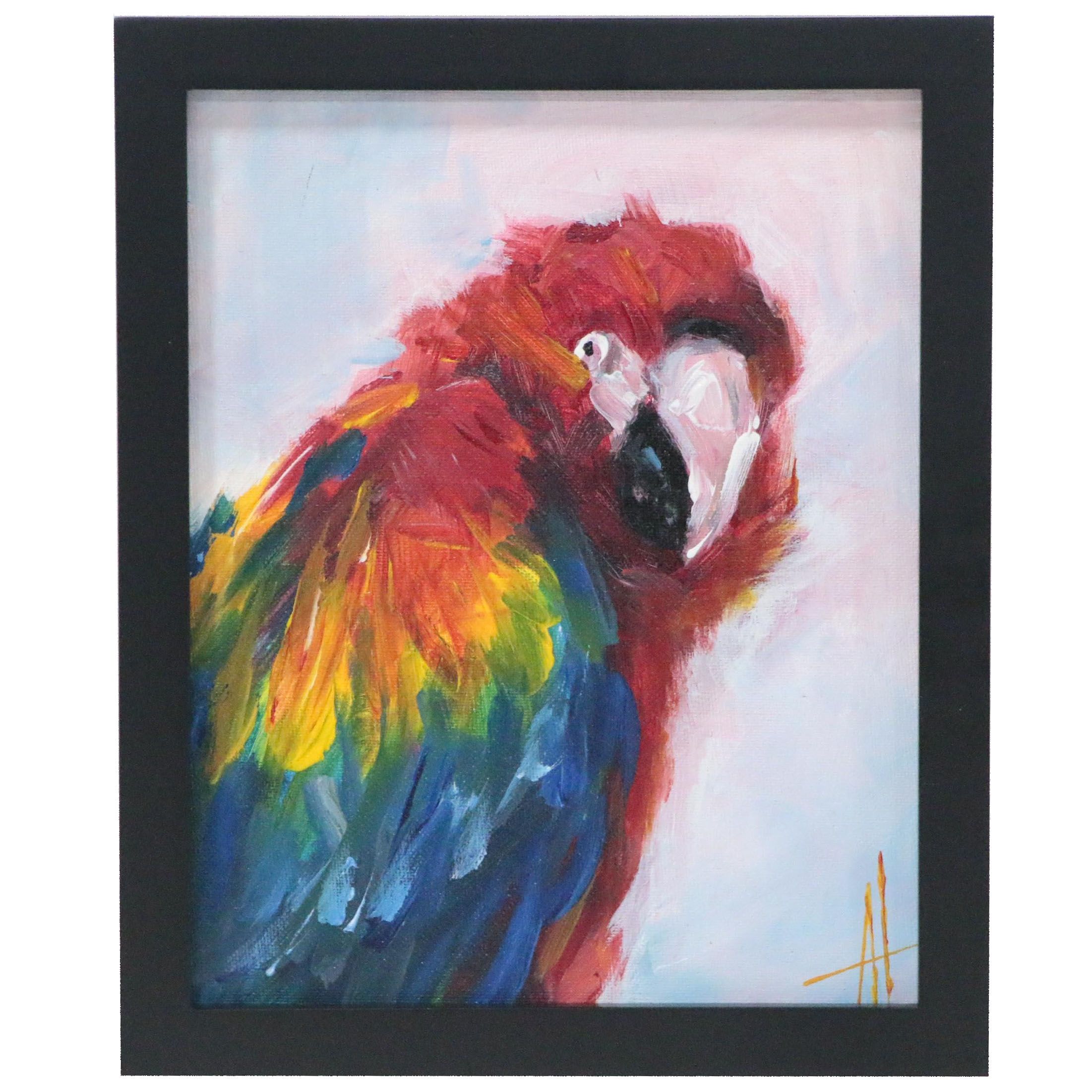 Original 16x20 Acrylic Bird Macaw Parrot Painting By Sherry