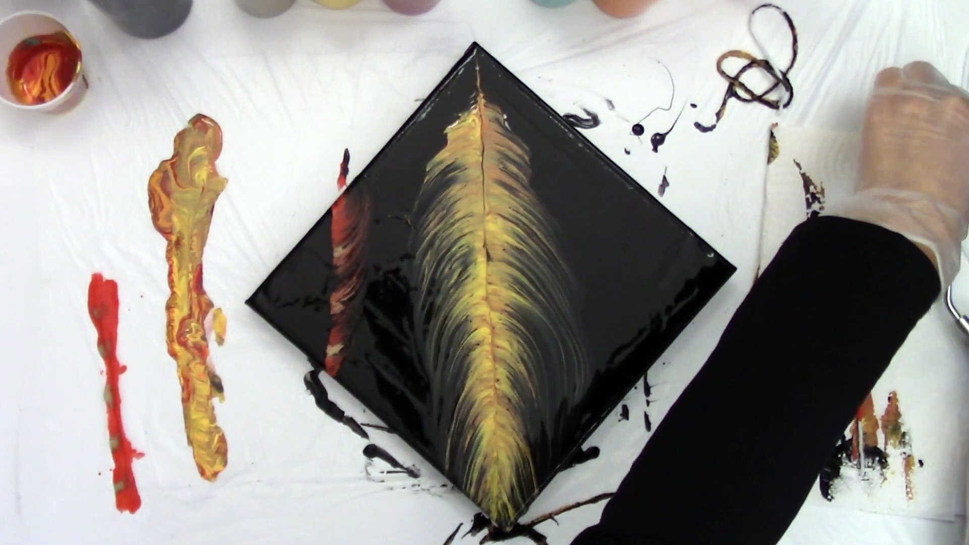 Small Feather String Pull Acrylic Pour In Canvas Fluid Art