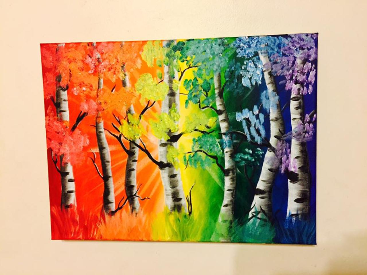 Easy Rainbow Trees Palette Knife Abstract Acrylic Painting