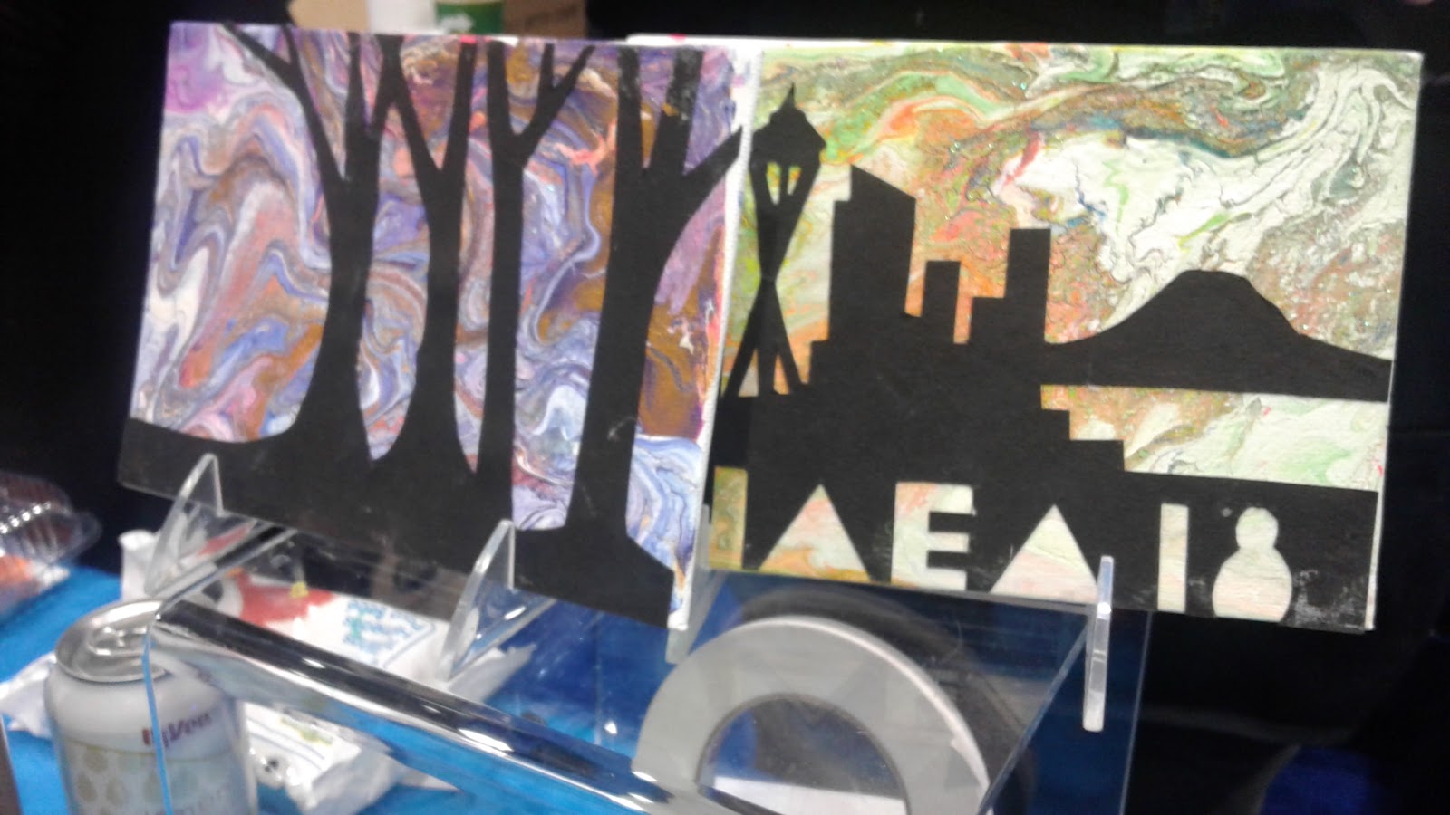 I painted a new howling wolf silhouette using acrylic pouring technique doing a double swipe with two different color sets.