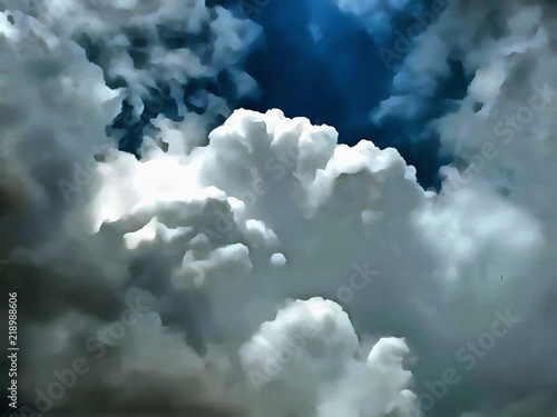 Abstract Original Oil Painting With Blue Sky And Cloud Background