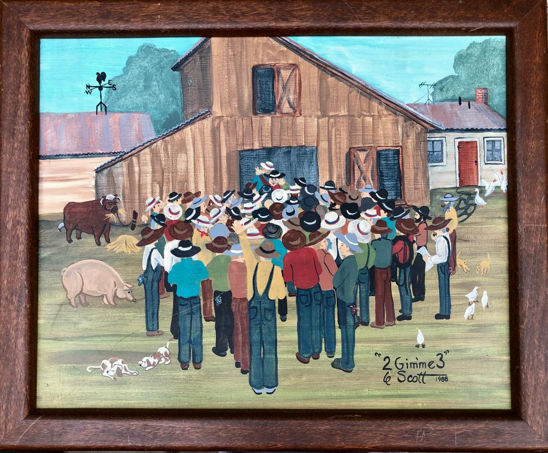 Jonas Bradford Folk Art Oil Painting Winter Farm Scene Signed