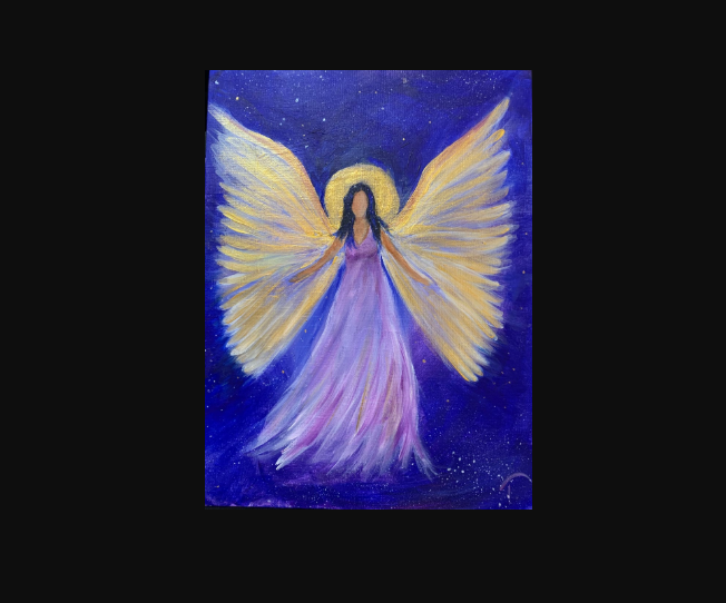 Original Acrylic Painting Spiritual Healing Angel 5 X 7 Silver