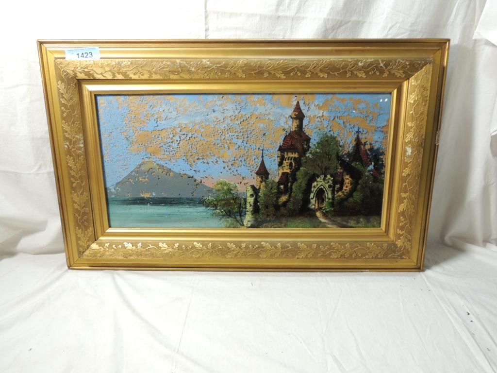 19th C Antique Federal Reverse Painted Glass Gold Gilt Tabernacle