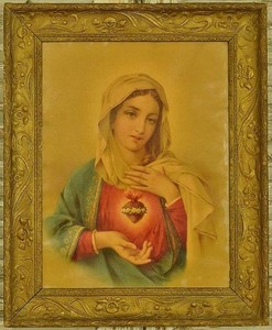 Vintage Sacred Heart Painting Made By Nun Framed Under Glass Etsy