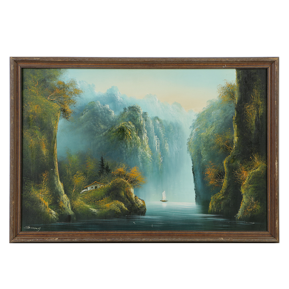 23 Oil Painting Canvas Oriental Landscape Pagoda Asian Mountain
