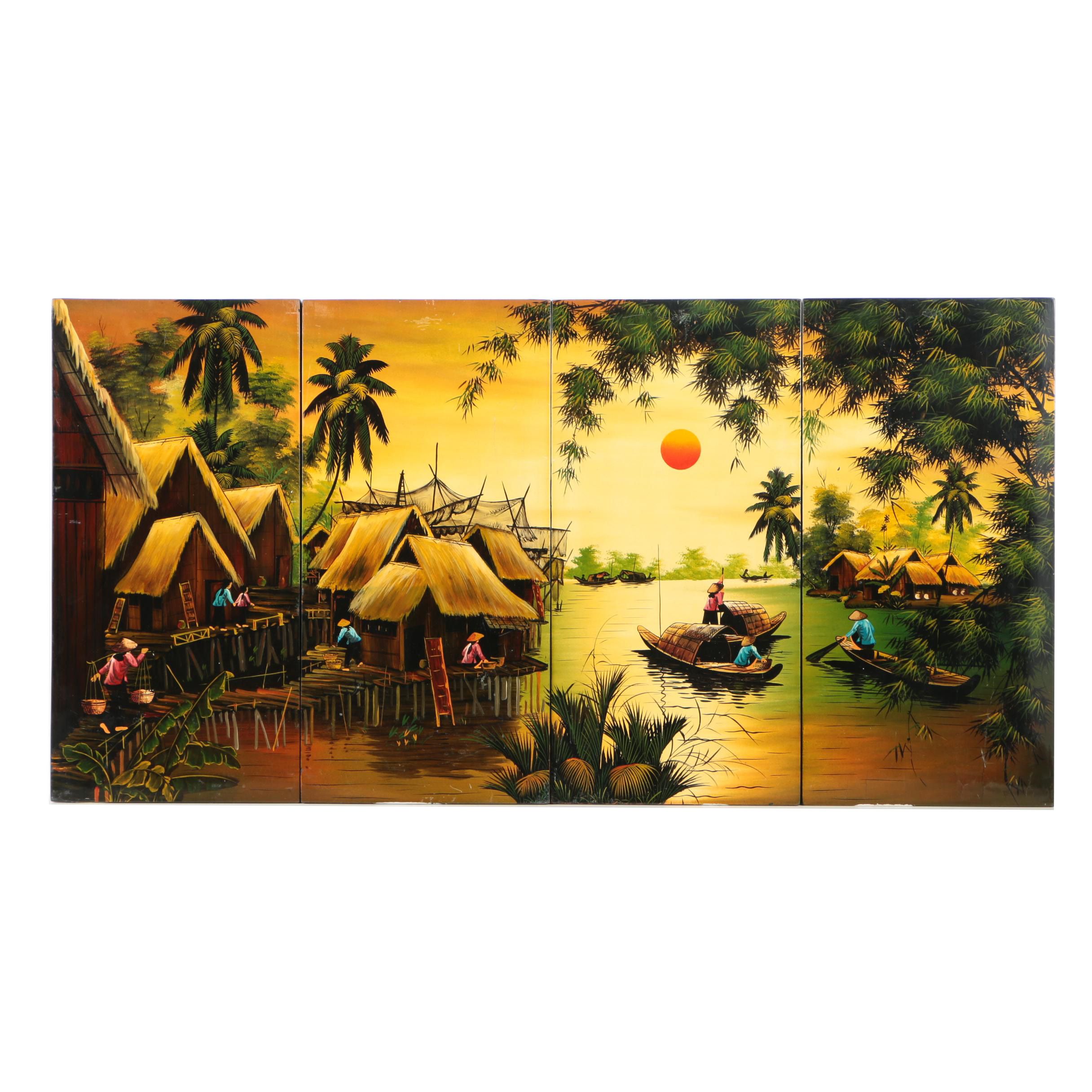 Beautiful Vintage Tropical Small Rare Asian Landscape Original Oil