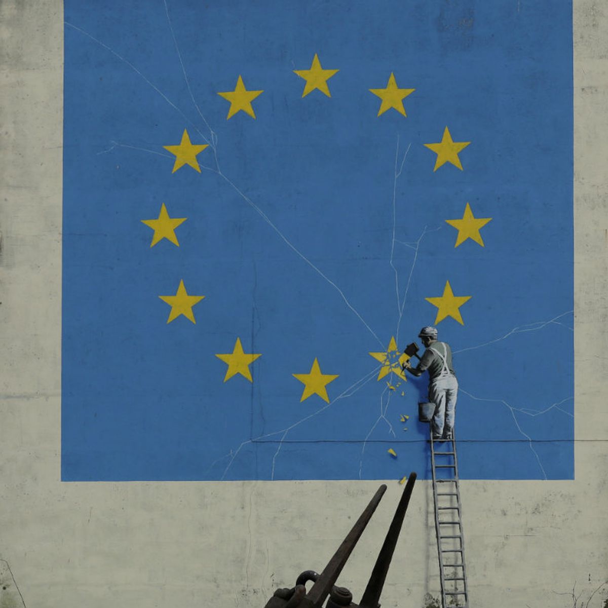 Banksy Brexit Mural Of Man Chipping Away At Eu Flag Appears In