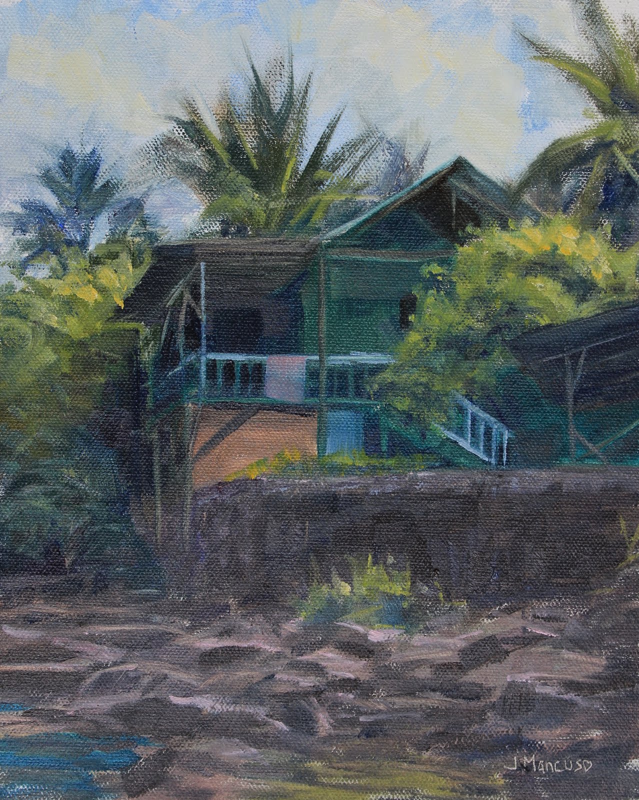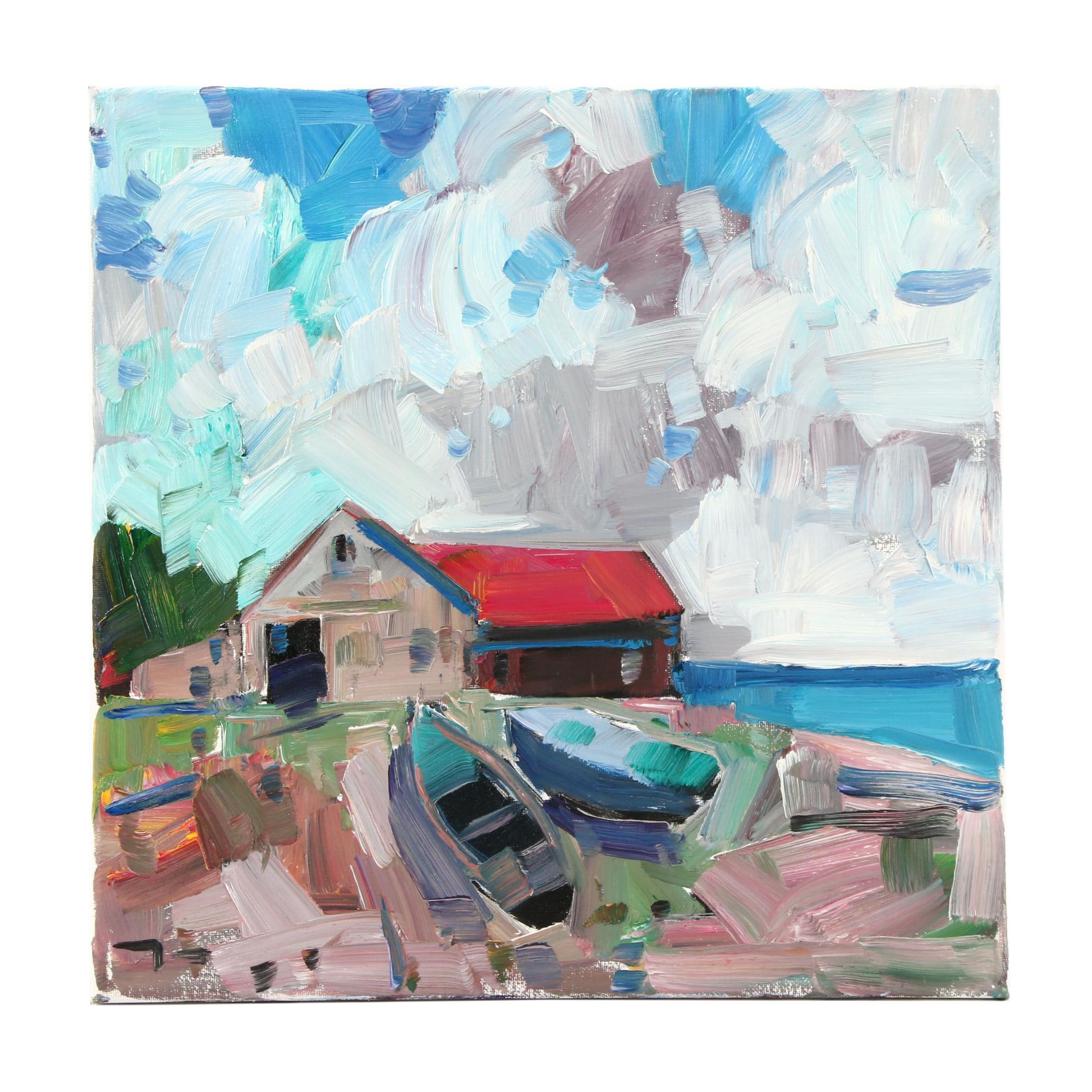 Original Beach House Oil Painting Seaside Lake Ocean Cabin By J