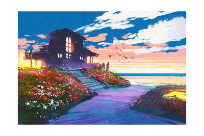 Oil Painting House On Beach Watercolor Paintings And Art Prints