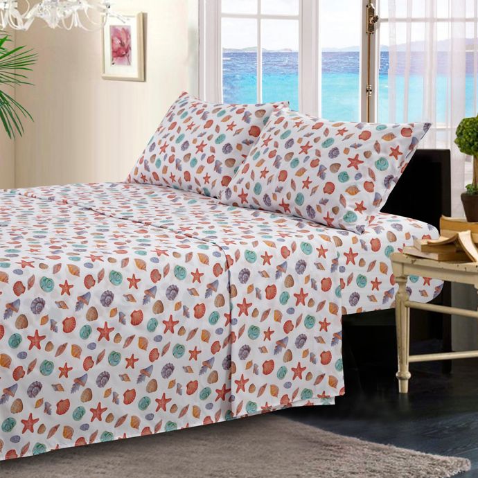 By The Seashore Painted Shells Sheet Set Bed Bath Beyond