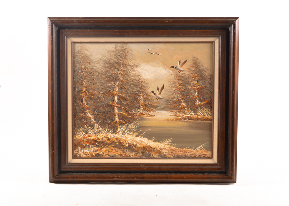 Vintage Original Oil Painting Landscape With Wildlife By Bernard