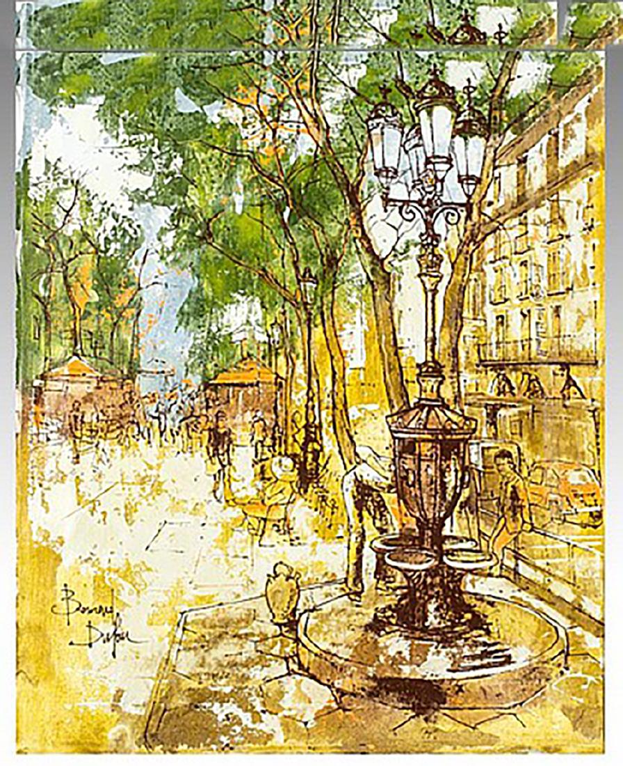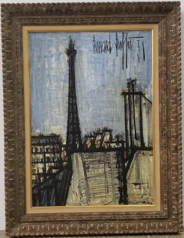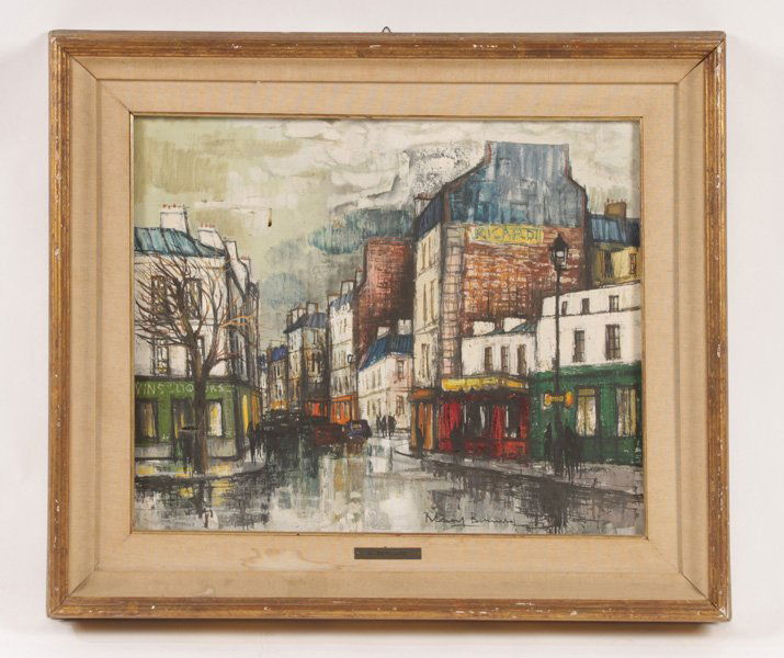 Vintage Large Oil Painting On Canvas City By Artist R Bernard