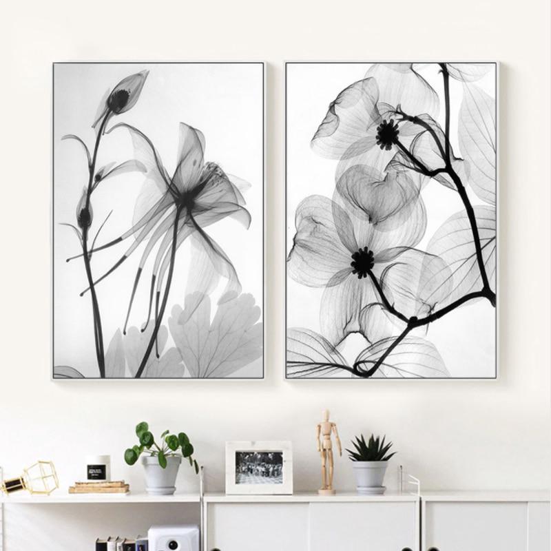 Hand Painted Black White Canvas Painting Pictures Of Flowers