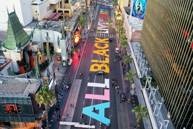Black Lives Matter Mural Being Painted On Scoville Street In Oak