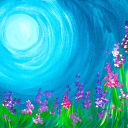 Artistic Strokes Two Blue Flowers Hand Painted Canvas 50x50cm