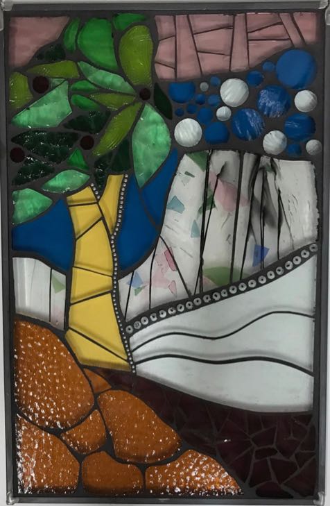 Stained Glass Illustration Painting Abstract Landscape Sea Waves