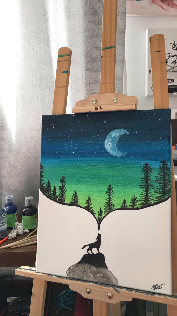 Amazon Com Wolf Blue Moon Canvas Wall Art Print Painting Wall