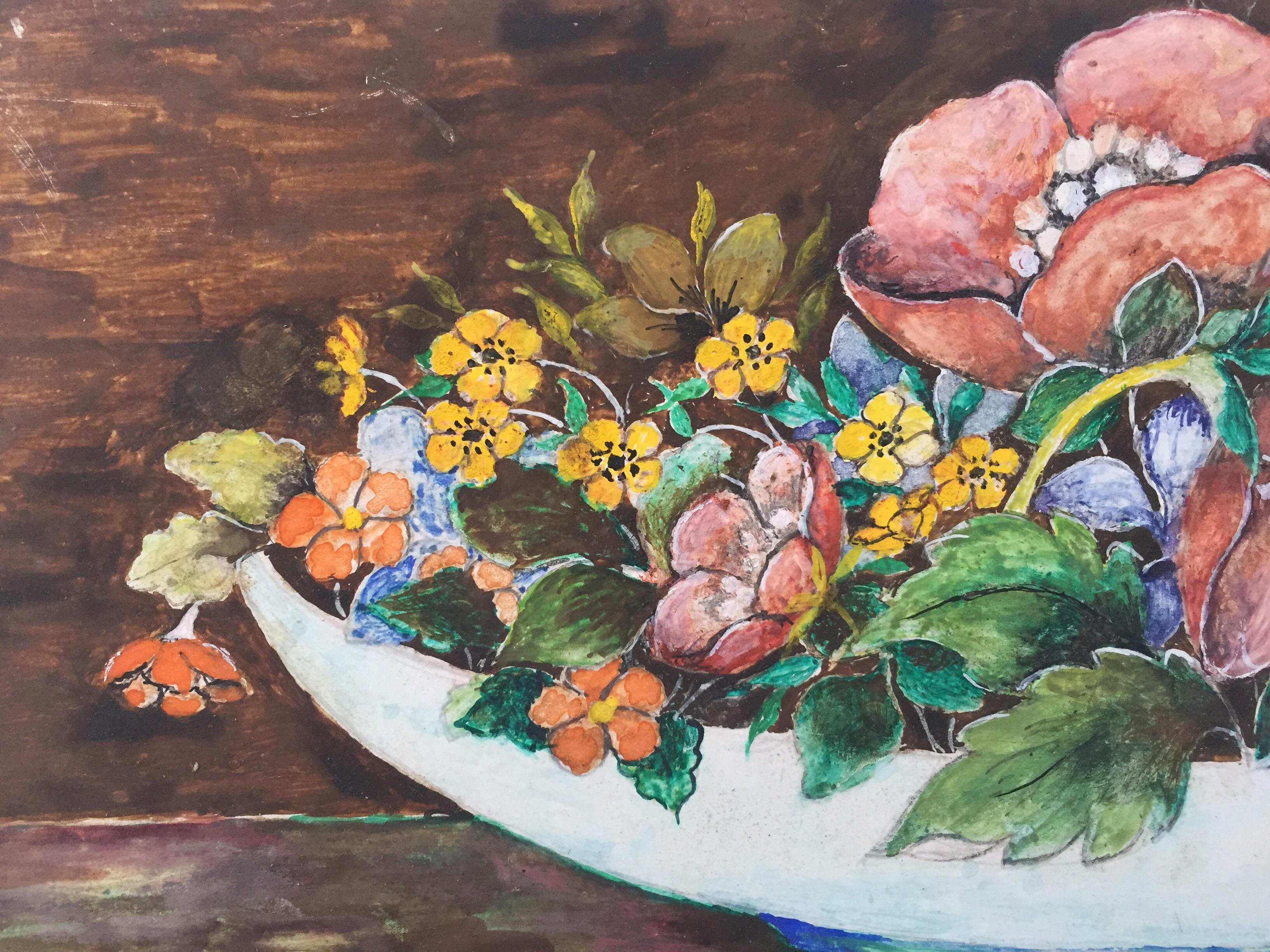 White Bowl With Flowers O B Painting 22x8 Chairish