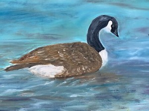Vintage Oil Painting Canvas Board Canadian Goose On The Lake One