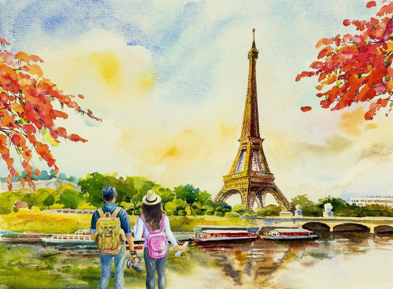 How To Paint Couple Red Umbrella In Paris Lovers Eiffel Tower