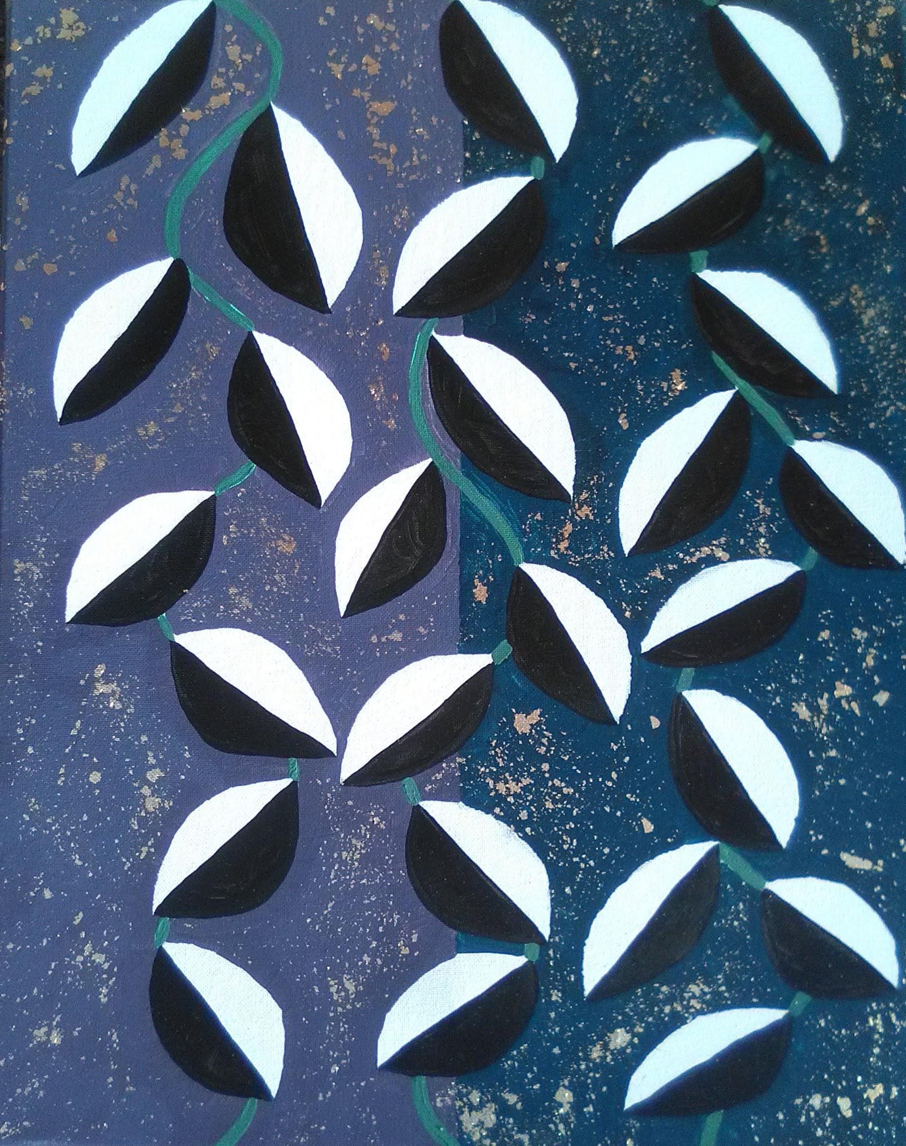 Half Moon Leaves Acrylic Painting With Gold Leaf On Canvas 2020