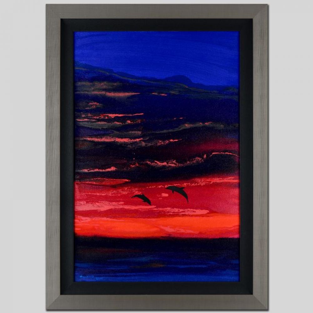 Abstract Original Painting Red Sky Textured Art Artwork Signed