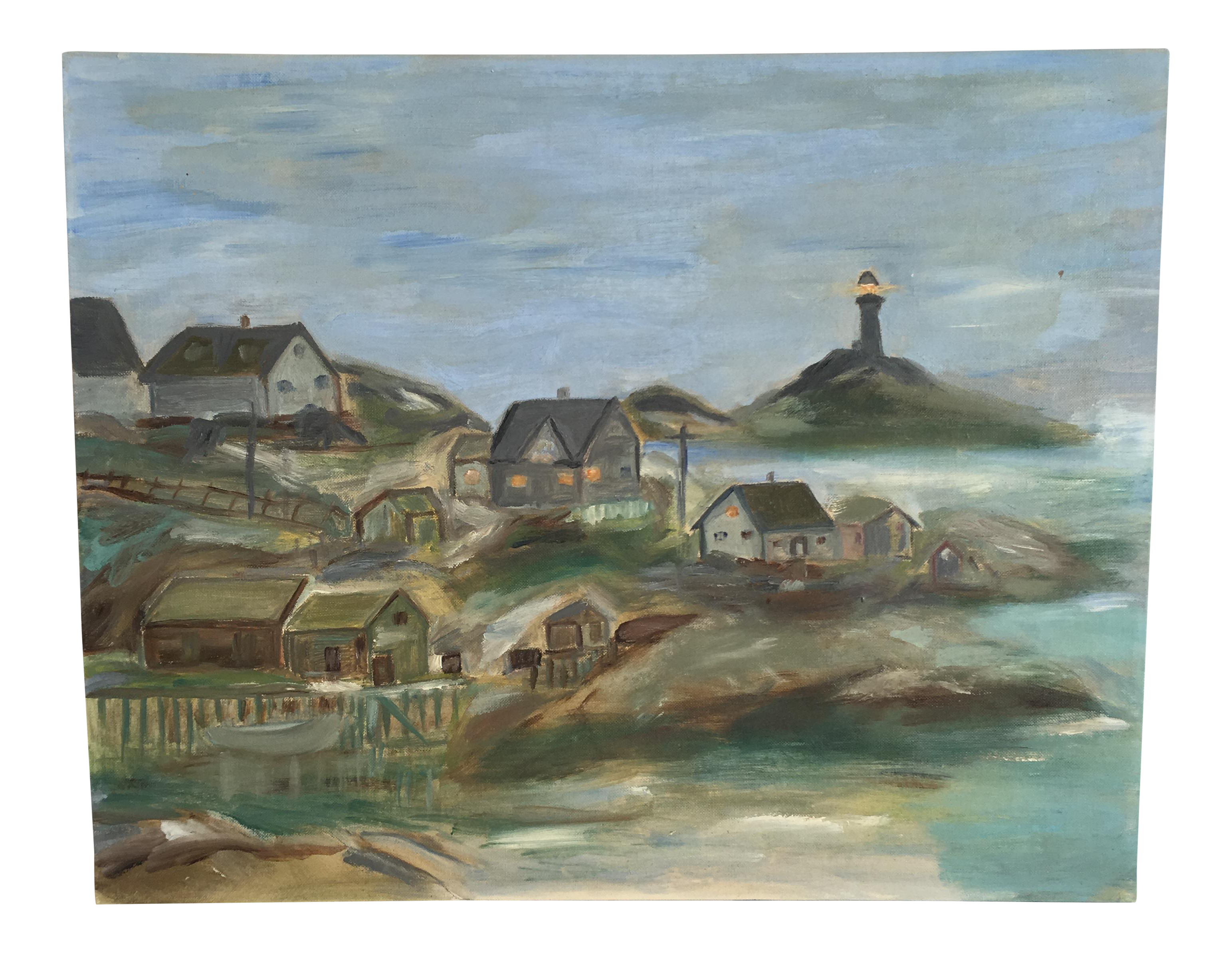 A Vintage Oil Painting Of The The Race Point Light At Provincetown