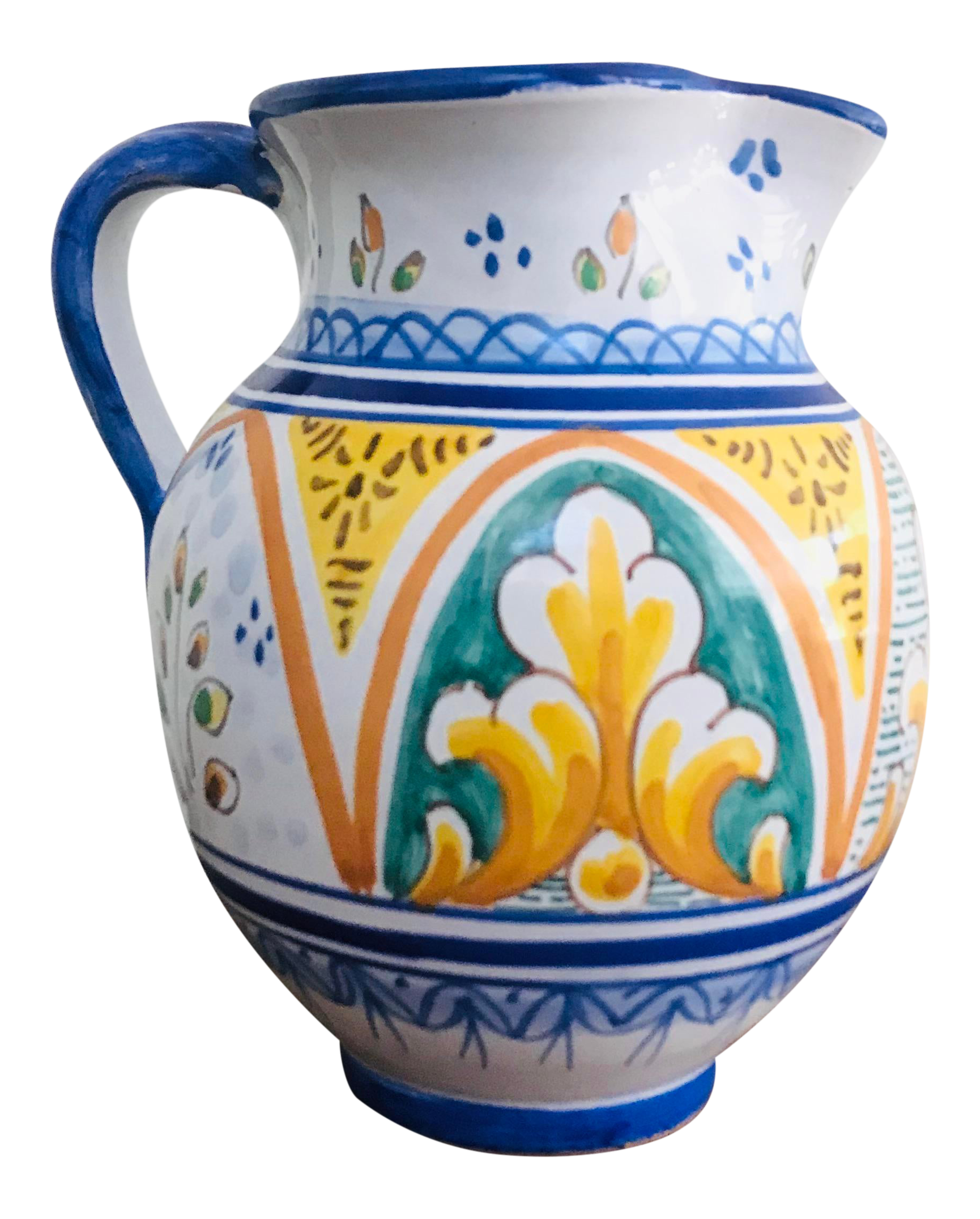 Spanish Talavera Hand Painted Signed Ceramic Pottery Pitcher