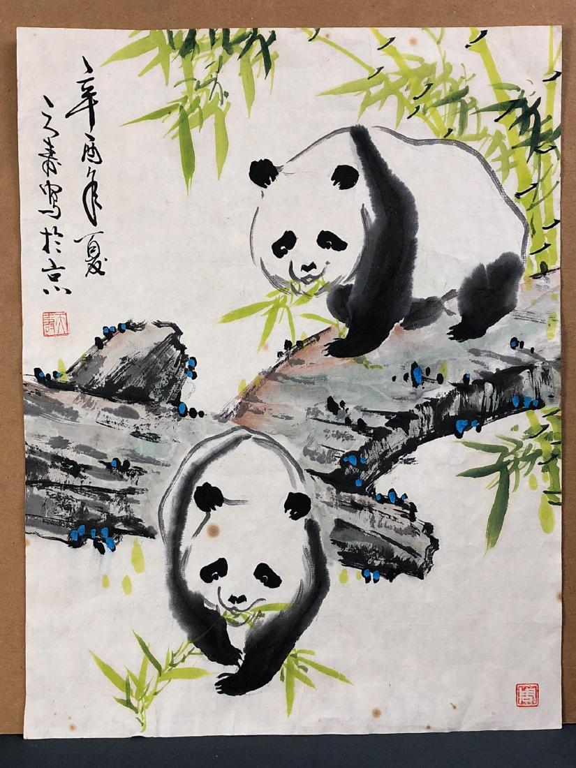 Chinese Watercolor On Paper Pandas In Bamboo Forest Apr 21