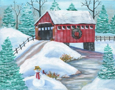 Christmas Farm Painting