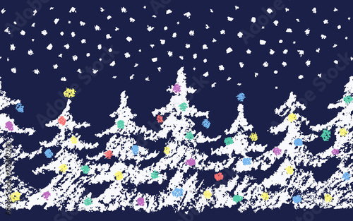 Christmas Tree Set Snow Watercolor Painting Stock Illustration