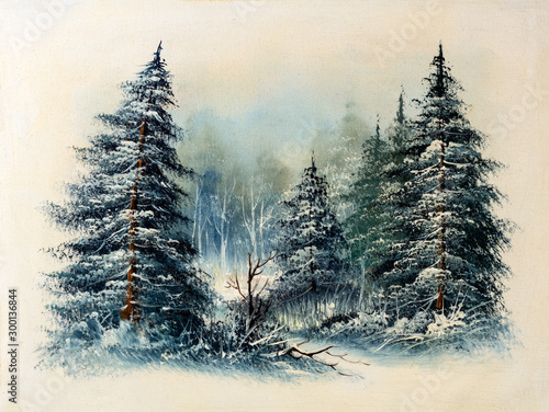 Winter Snow Background Blurred Snowflakes Original Oil Painting