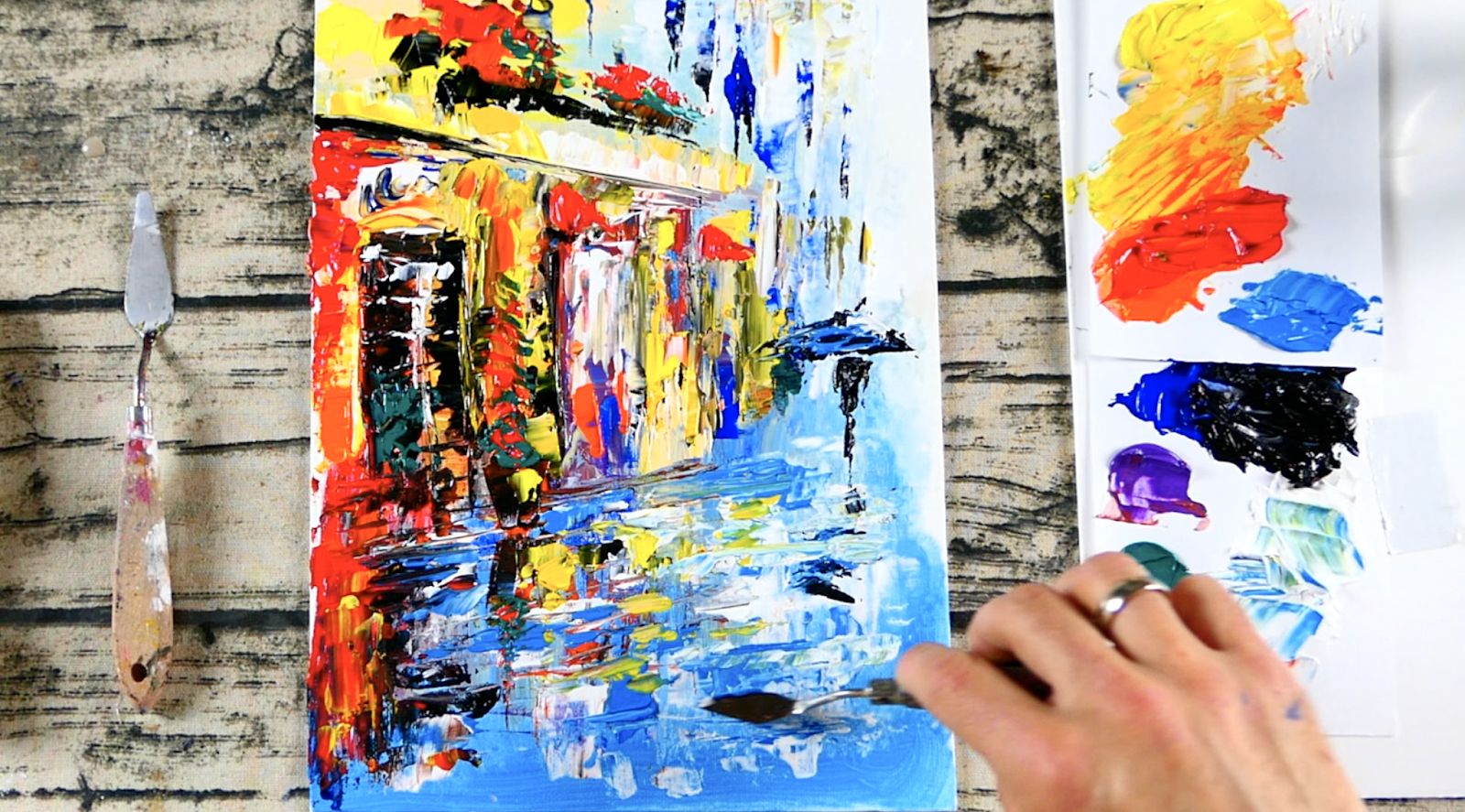Easy City Skyline Landscape Acrylic Painting Palette Knife Gray