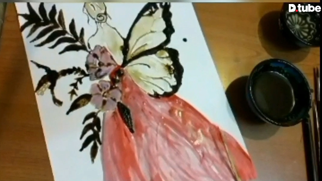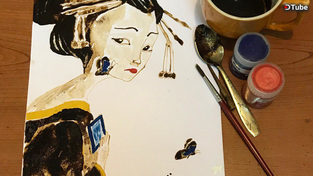 Coffee Painting Girl With Butterflies And Dragonflies Flying Out